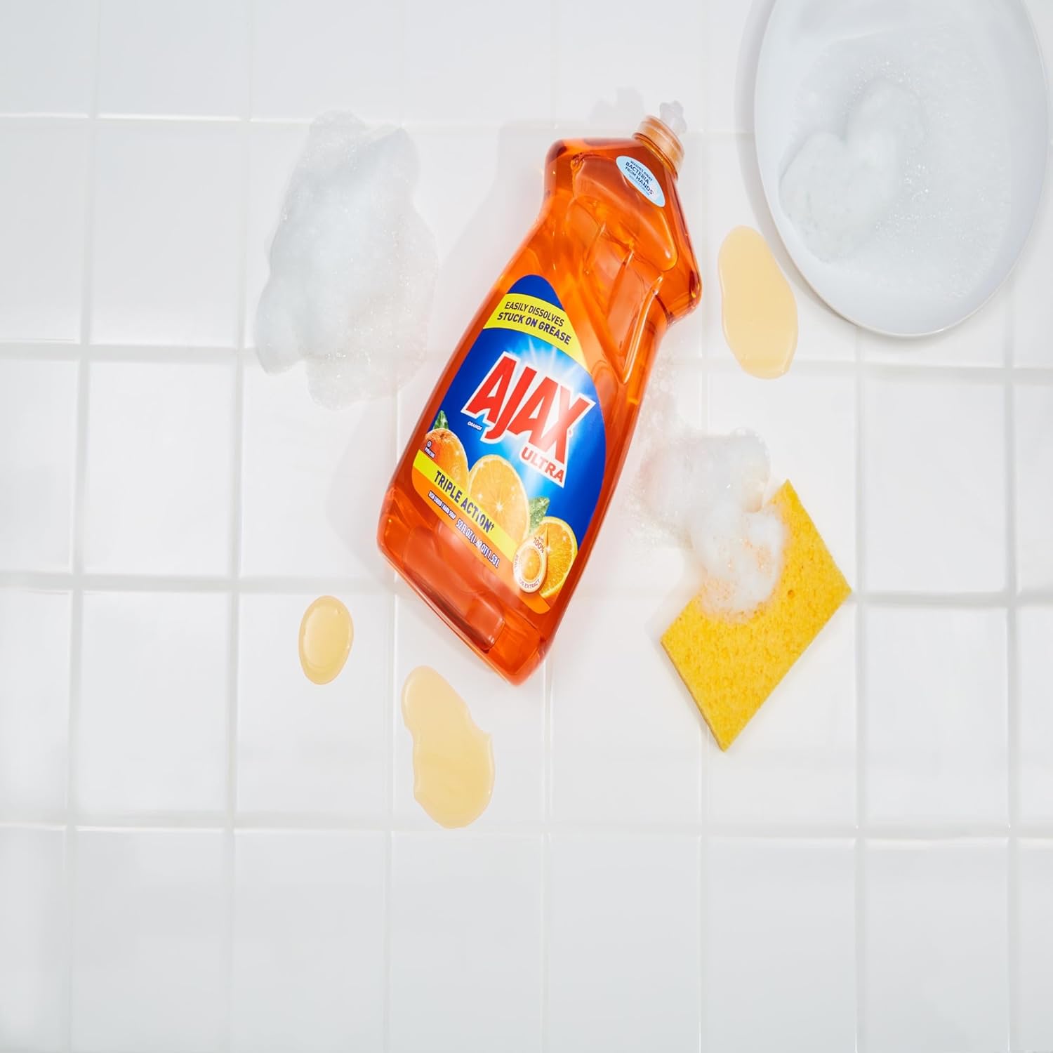 Ajax Triple Action Orange Dish Liquid - 52 fl. oz. Bottles - Liquid - 52 fl oz (1.6 quart) - 6 / Carton - Orange