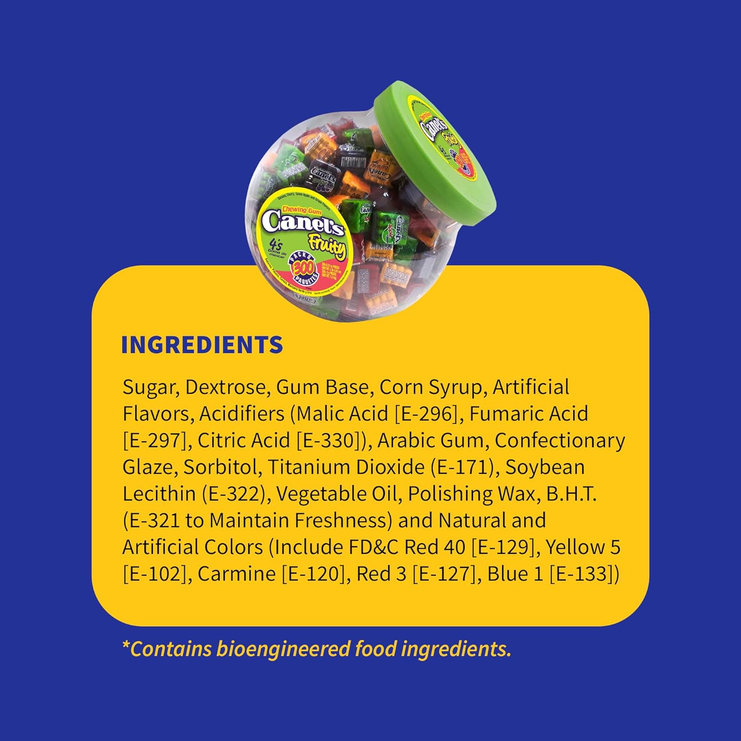 Canel's 4-Piece Gum Pack Jar in Fruit Flavors - Cherry, Banana, Grape, and Apple, 300 Count