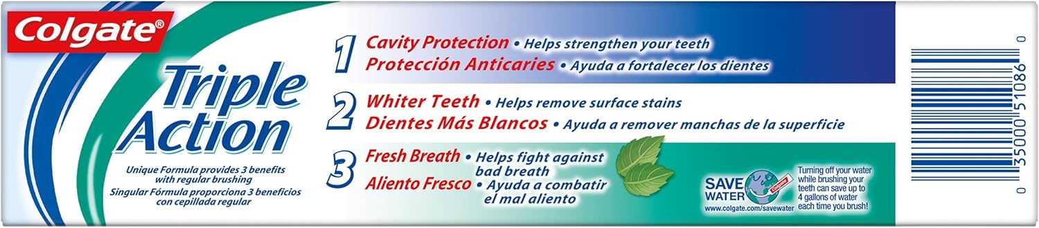 Colgate Triple Action Toothpaste, Mint, 8 Ounce