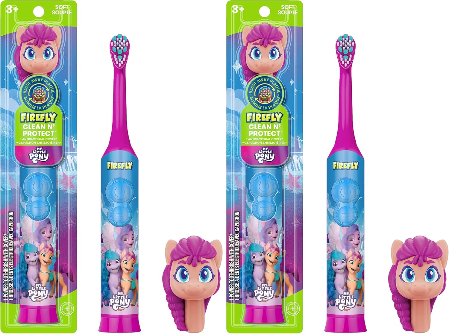 FIREFLY Clean N' Protect My Little Pony Power Toothbrush with 3D Character Cover, Soft Bristles, Battery Included, Ages 3+ (Pack of 2)