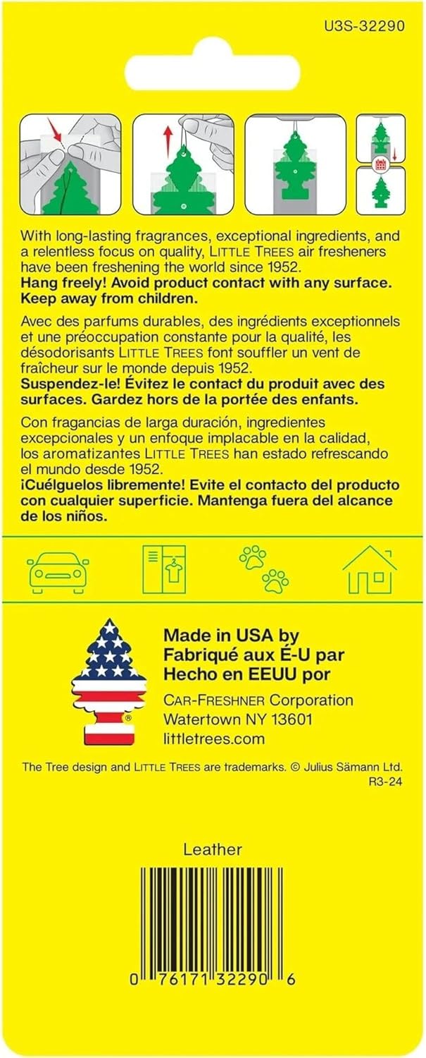 LITTLE TREES Car Air Freshener | Hanging Paper Tree for Home or Car | Leather | 3 Pack