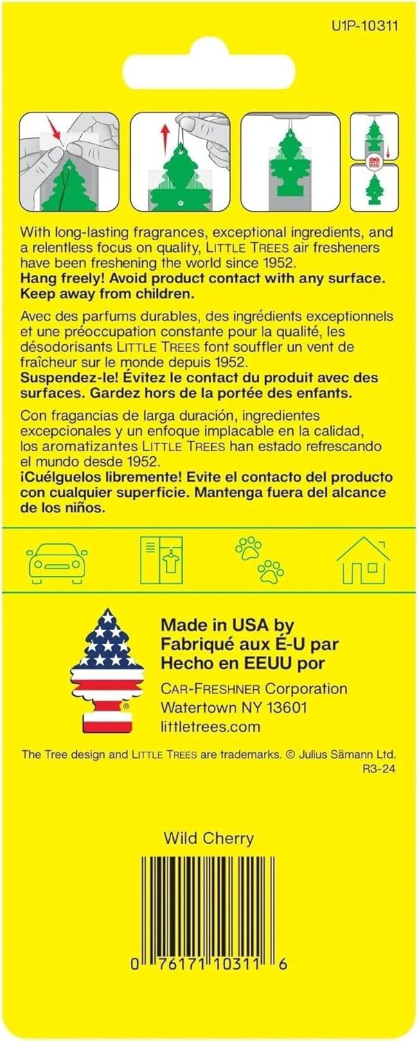LITTLE TREES Car Air Freshener | Hanging Paper Tree for Home or Car | Wild Cherry | Single Tree per Package