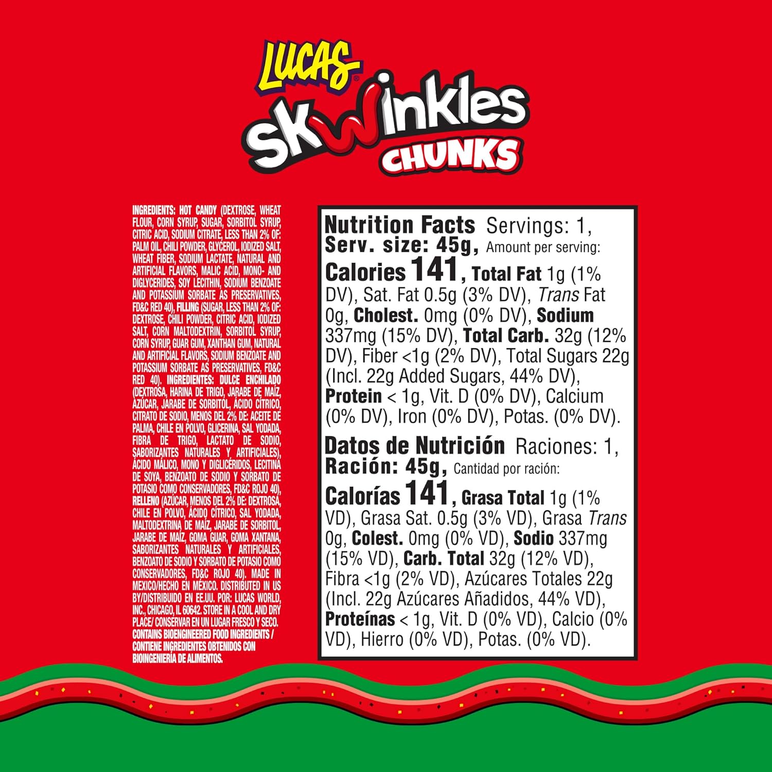 • PERFECT SNACK AT ANY TIME OF THE DAY! Lucas Skwinkles Chunk has the perfect combination between a Candy and Snack, creating a fun moment to share.
