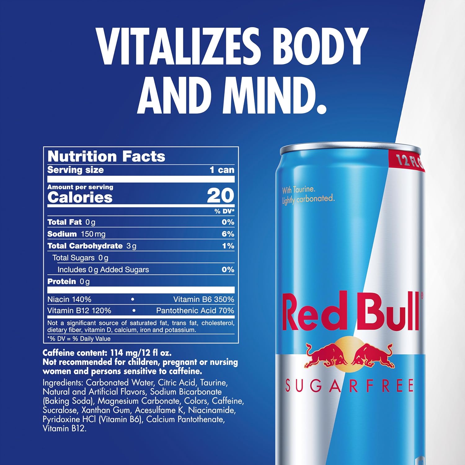 • Red Bull Sugarfree formula contains high quality ingredients, including caffeine, taurine, and B group vitamins