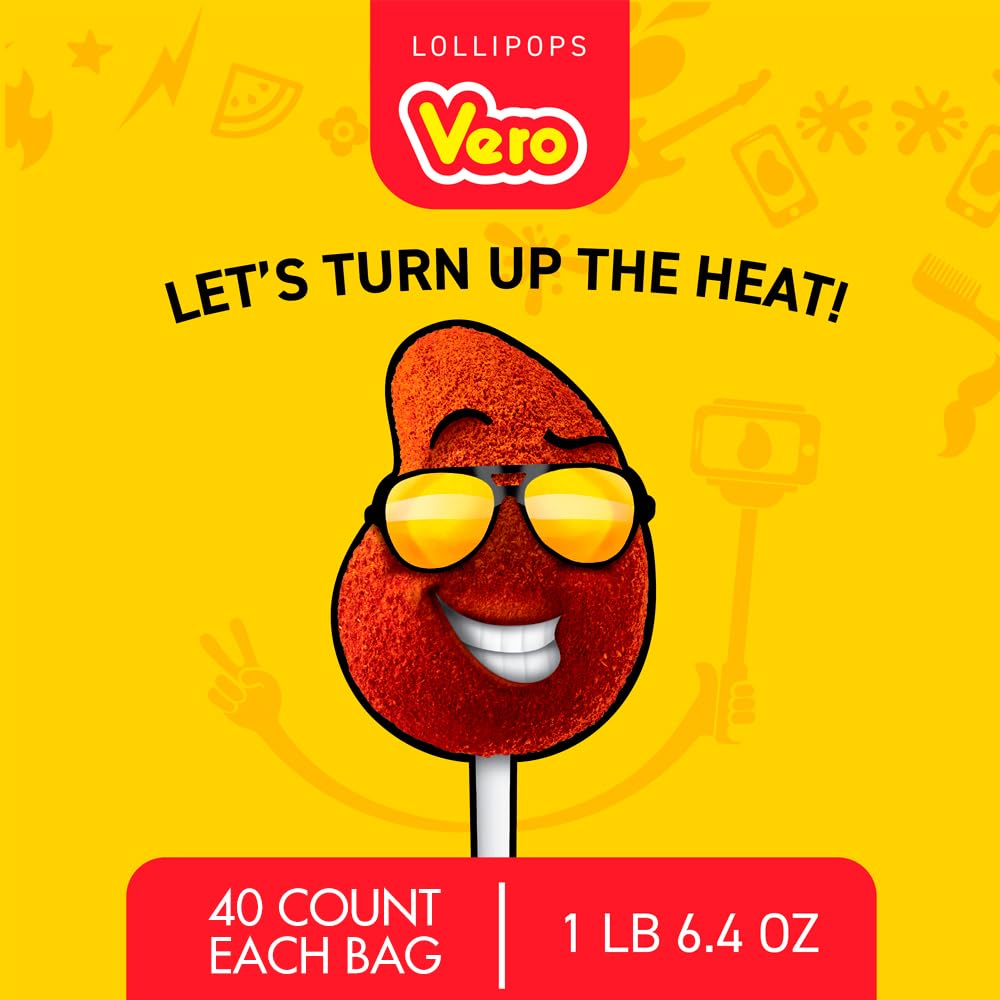 Vero Mango Flavored Lollipops Covered in Chili Powder 7 Bags, 40 Count Each (Net Wt. 167.86 Ounces) - Individually Wrapped Mexican Candy for Piñatas, Halloween, and More.