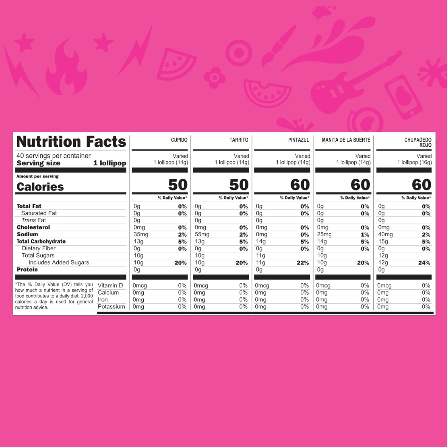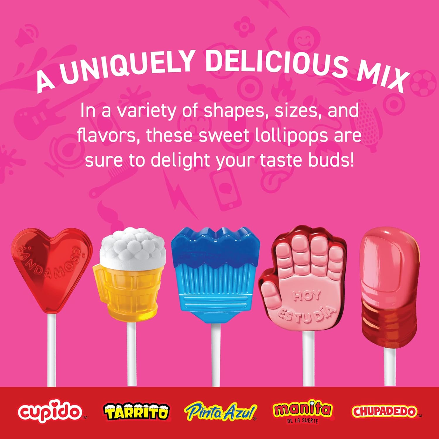 • A Uniquely Delicious Mix: Excite your taste buds with a variety of lollipops that delight the senses. This bag includes an assortment of our sweet favorites: Manita, Chupadedo, Tarrito, Cupido, and PintAzul.